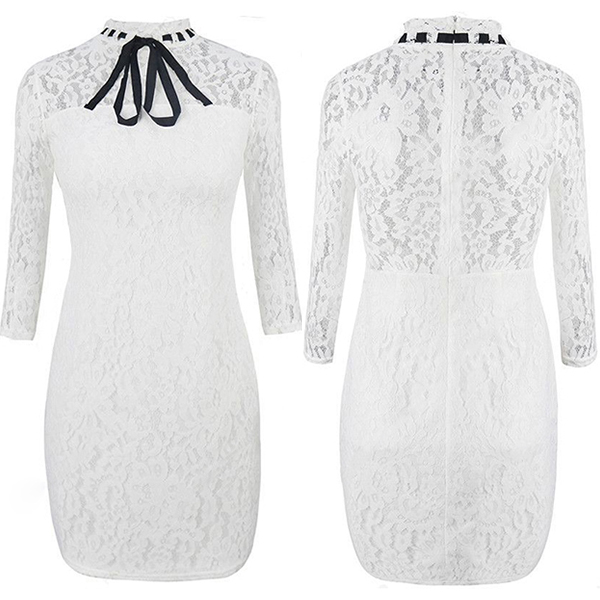 and a fit silhouette,this refined dress can sketch out your slender figure. Collar part with lace-up design makes this