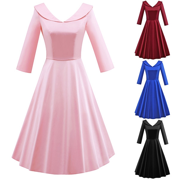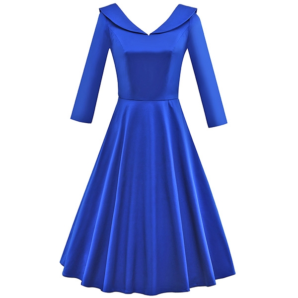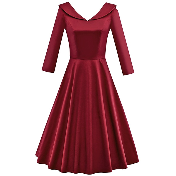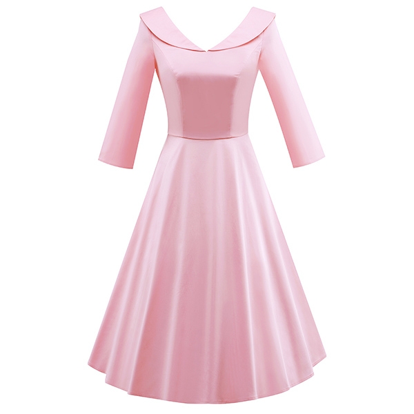 Elegant Solid Color 3/4 Sleeve Lapel High Waist Dress