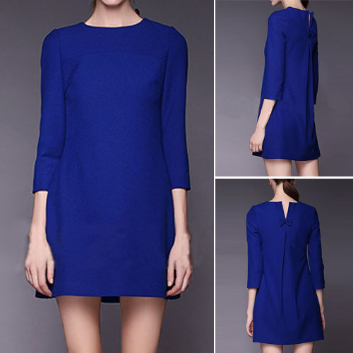 on the back for a touch of chic elegance allure. Solid color style, accompanied with round neck and 3/4
