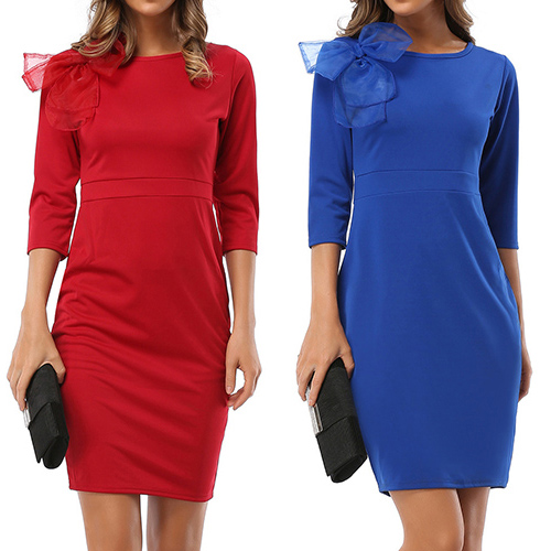 Your femininity thoroughly exudes via this dress! Minimalist style, with round neck, 3/4 sleeve and