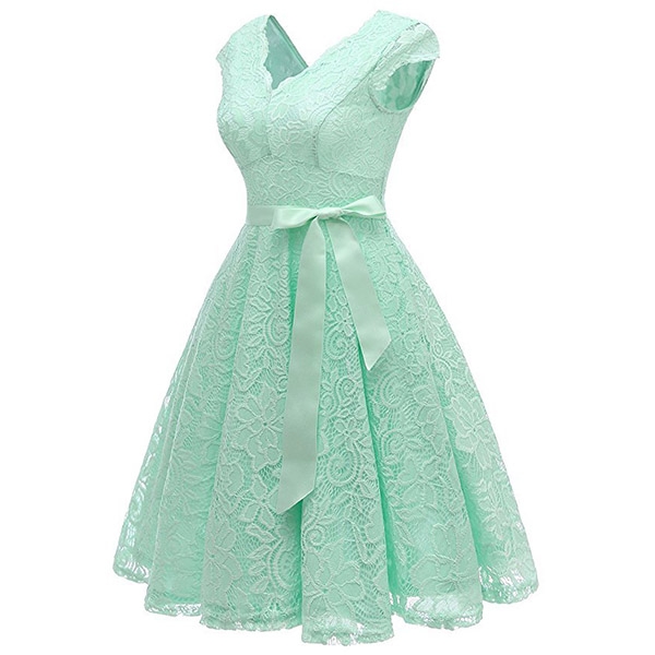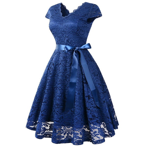 tone design can lend you an elegant vibe. Finished with cap sleeve,v-neck and high waist design,
