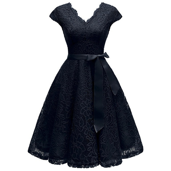 this delicate lace dress can give you an easy transition from daytime out to night parties.