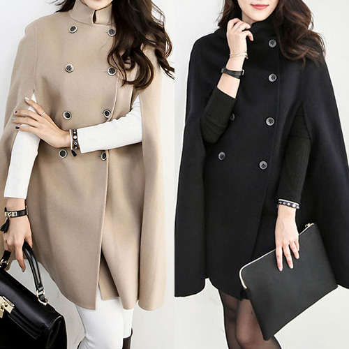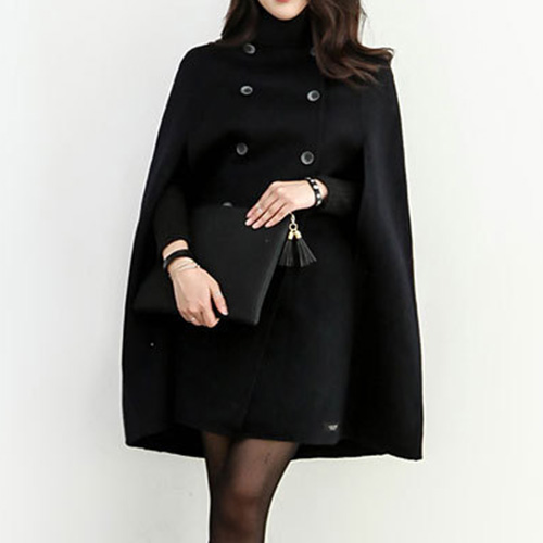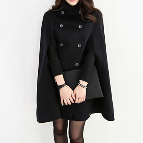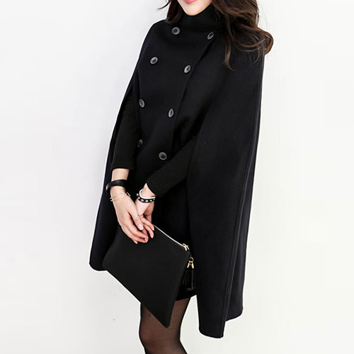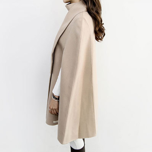 Charming appeal comes easily once you wear this woolen coat. Cape-style design is the