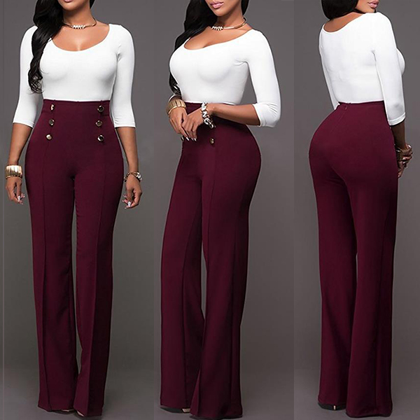 Be an elegant lady in this flared pants. The solid color tone is designed for an elegant and generous vibe,while its high waist