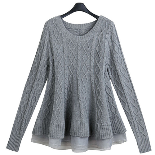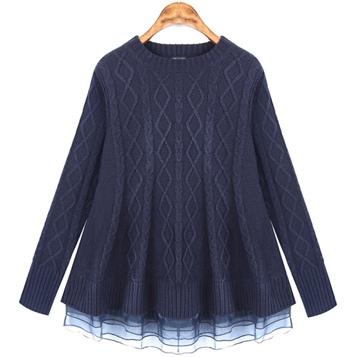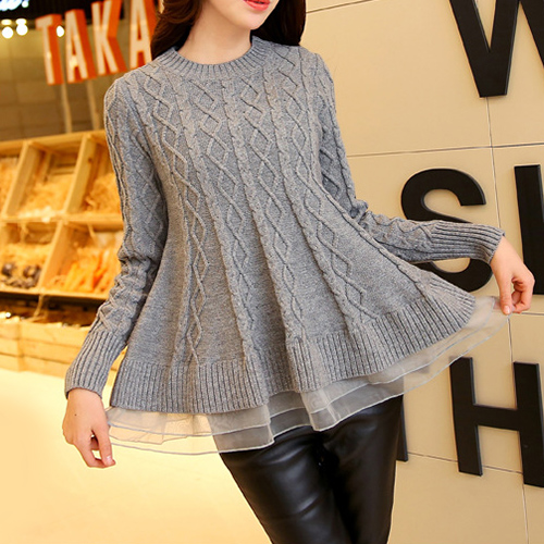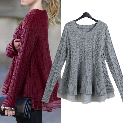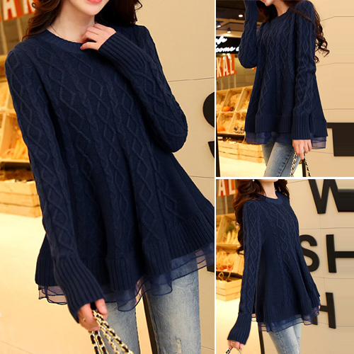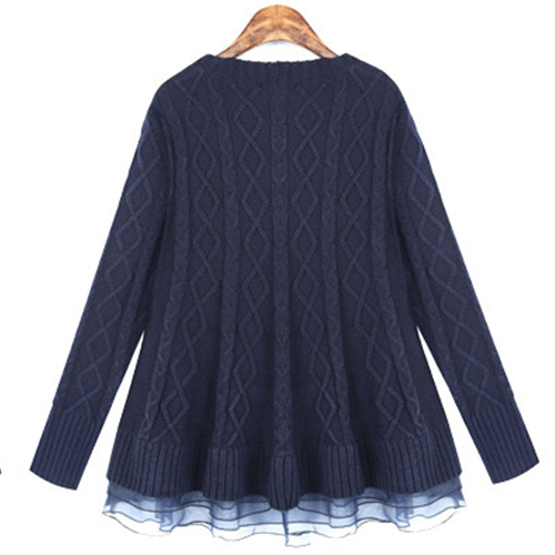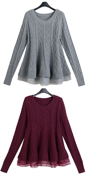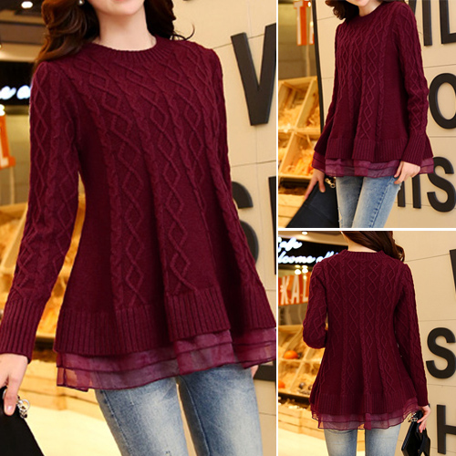 style, decorated with round neck, long sleeve and double-layer hem spliced design, this sweater shows