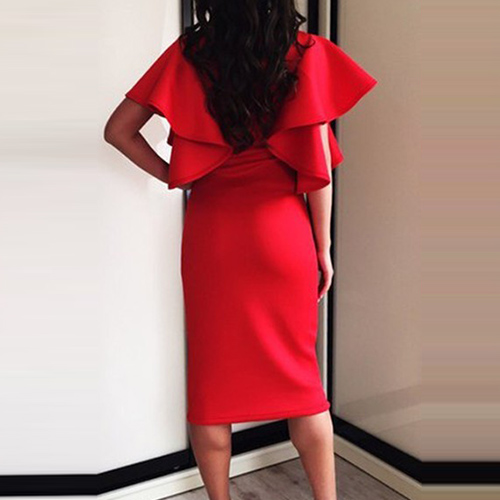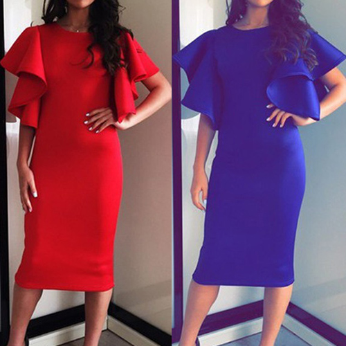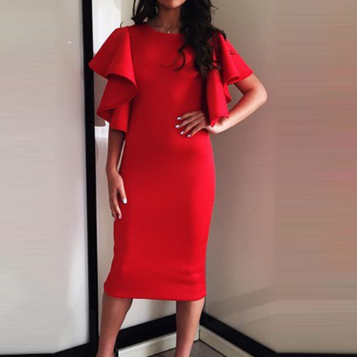 This dress will do just that with zero effort needed on your part. Elegant solid color,with flouncing sleeve,