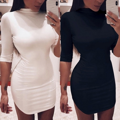 simple and delicate dress. Coming with a solid color,accompanied with half sleeve,round neck and a