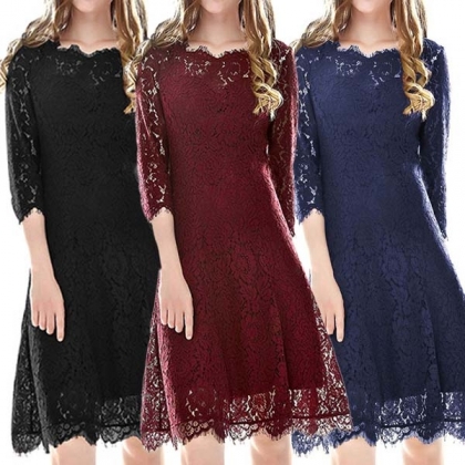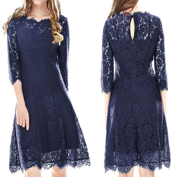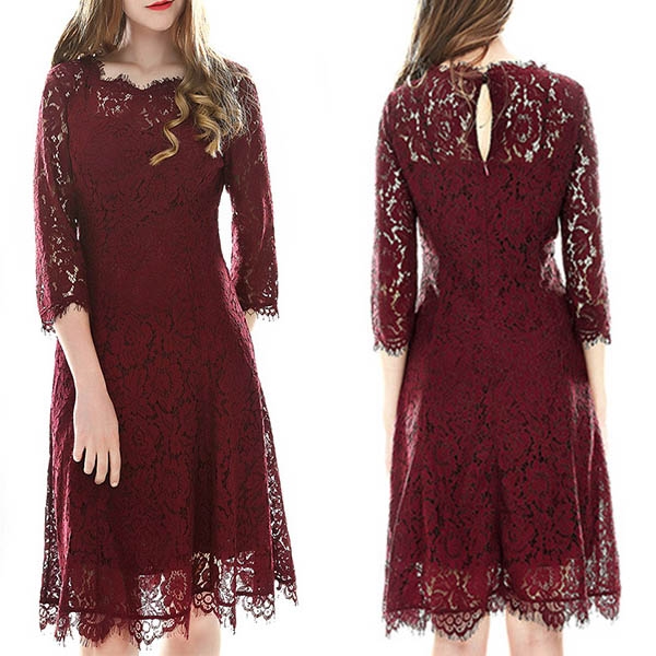 Exhibit your incredible style sense with this beautiful lace dress. The solid color tone design can give