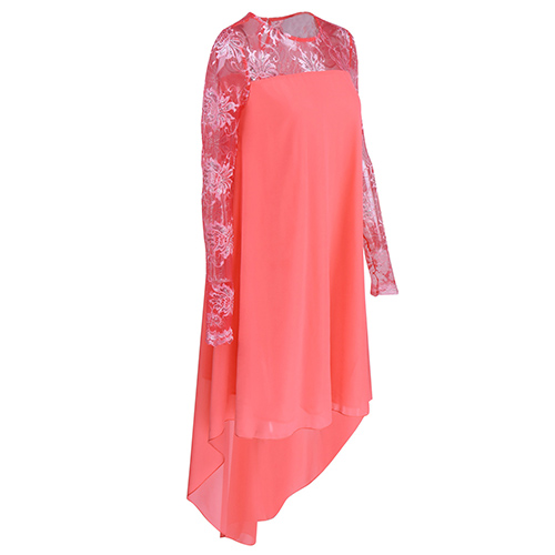 outfitted with solid color, round neck ,long sleeve and high-low hemline design, this dress is just