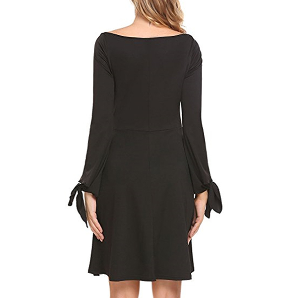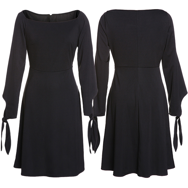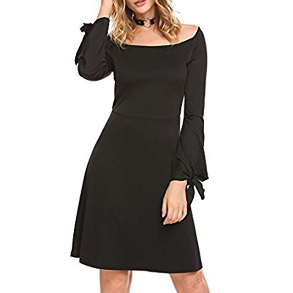 This dress boats a classic yet mysterious black tone,elegant and charming. The off-shoulder boat neck design