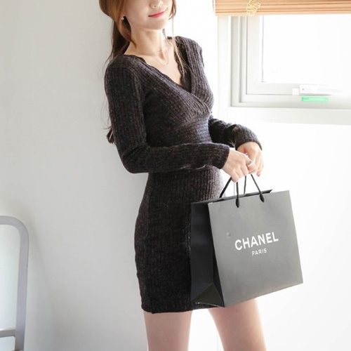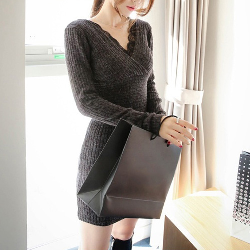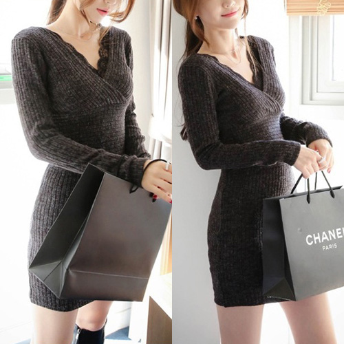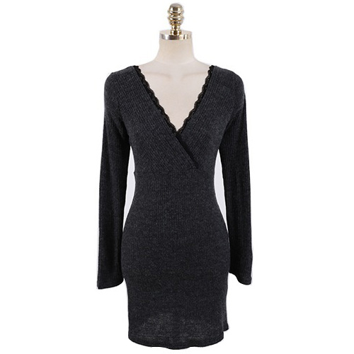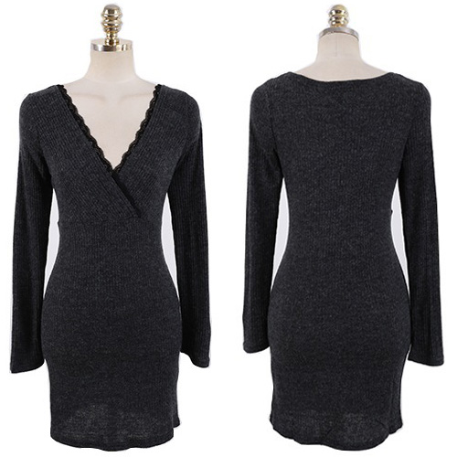 off your slender figure. And its v-neckline with lace spliced design makes it look more sexy and feminine.