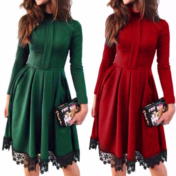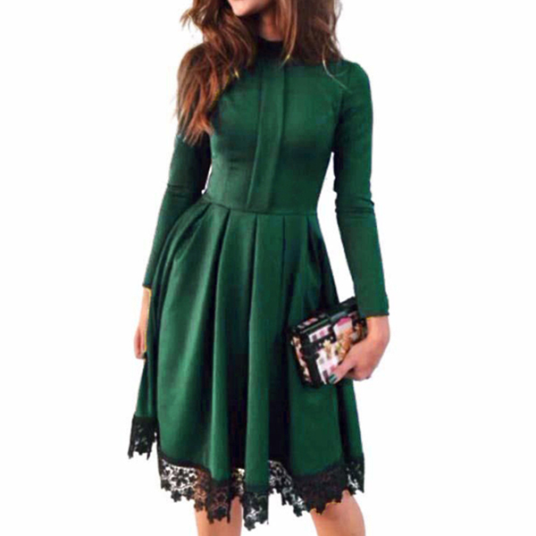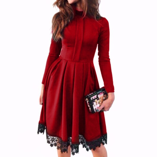while the lace spliced hem design can further enhance your female appeal. Designed with long sleeve,
