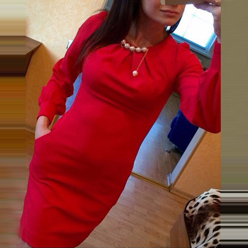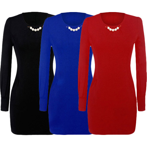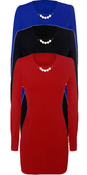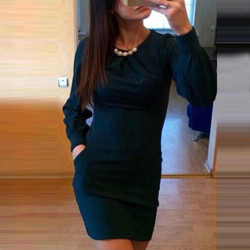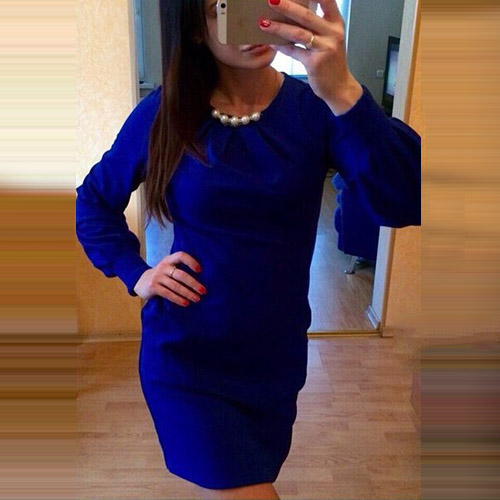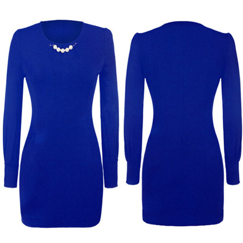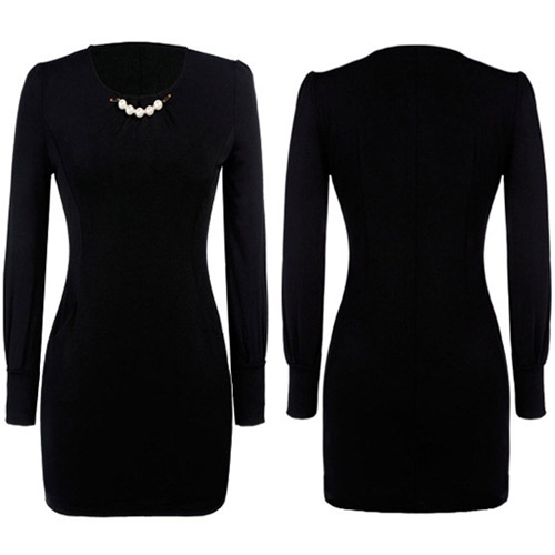 round neck and slim fit design,elegant and generous. Neckline decorated with pearls,making