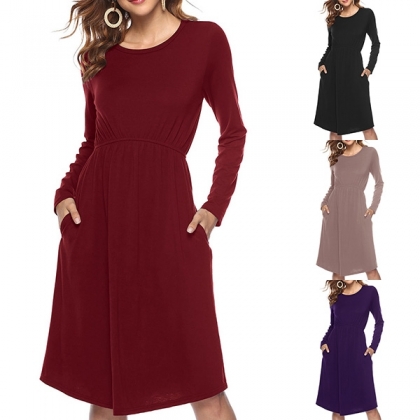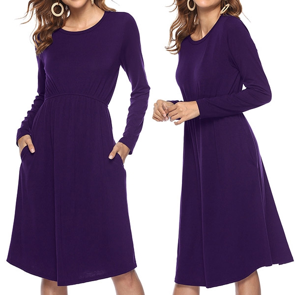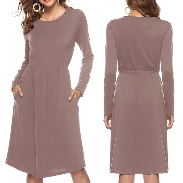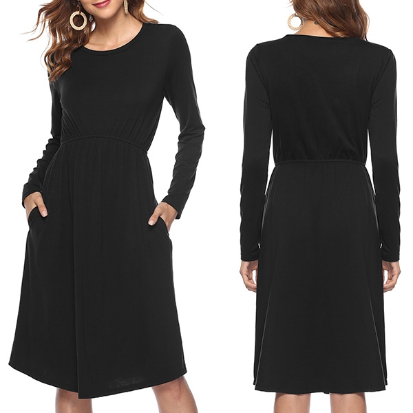 This dress comes with a solid color,which gives you an elegant and generous vibe. Finished with long sleeve,