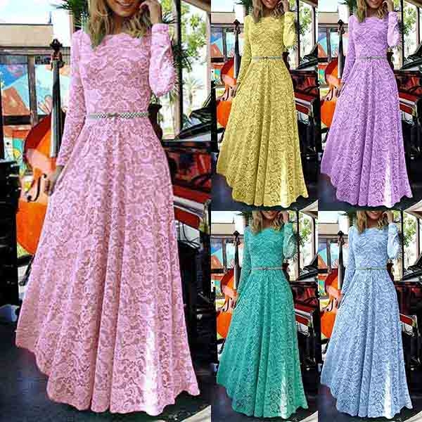 It is finished with long sleeve,round neck and a maxi length,this dress is a good way to enrich your wardrobe.