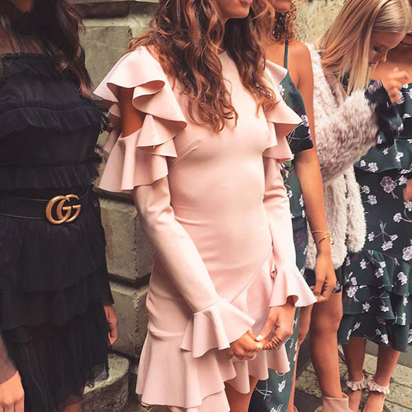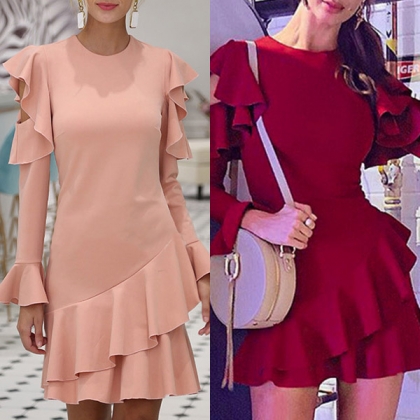 Comes with a solid color,the hollow out design at sleeve part and ruffle details make this dress look so