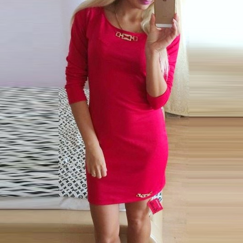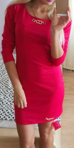 Designed for a stylish and charming look,this long sleeve dress features a round neckline,