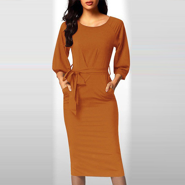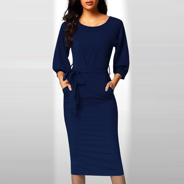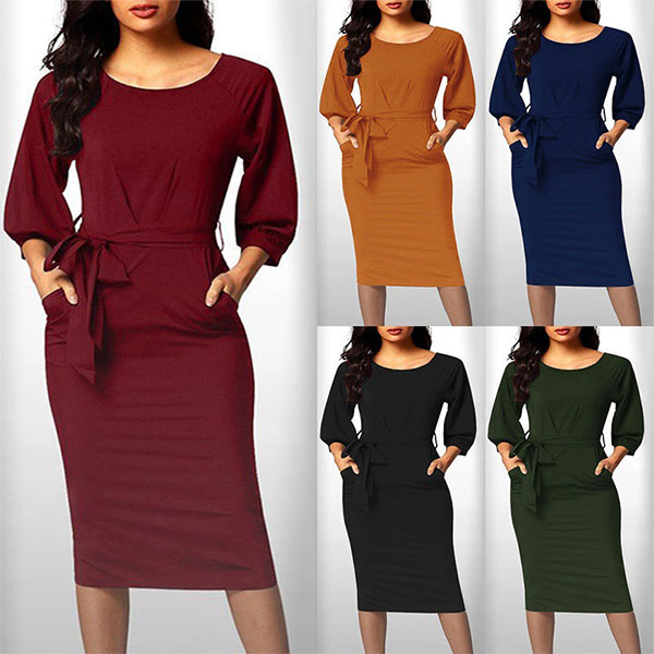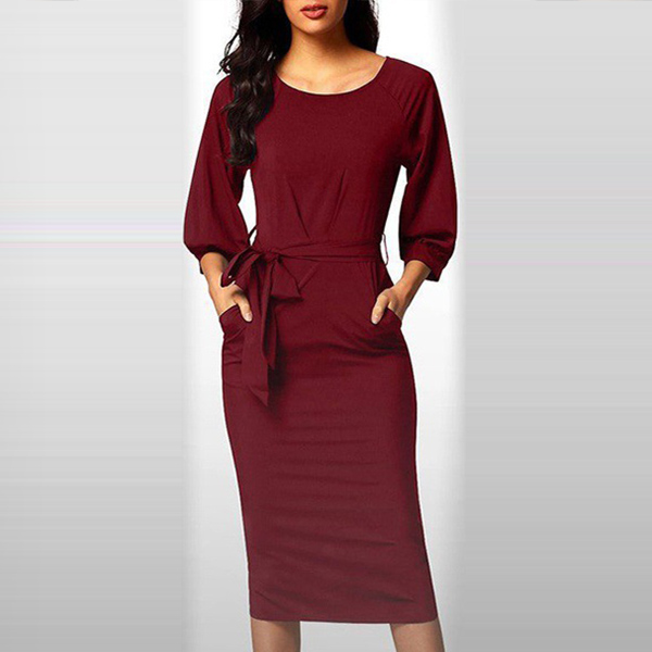 Comes with a solid color,finished with long sleeve,round neck and a fit silhouette,this dress can demonstrate
