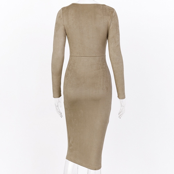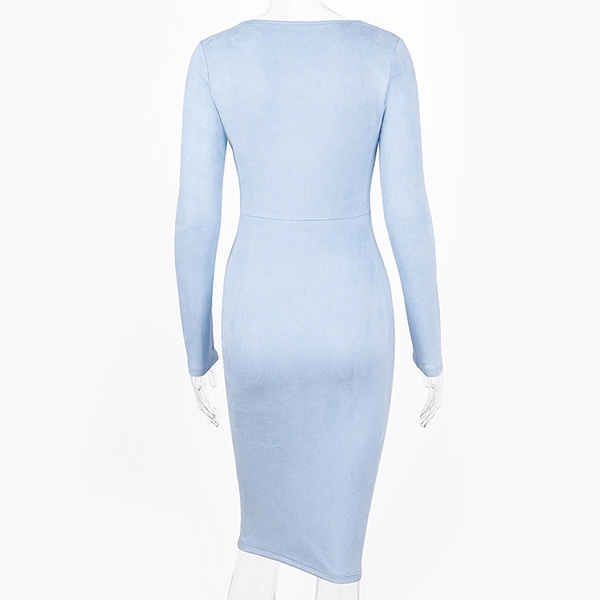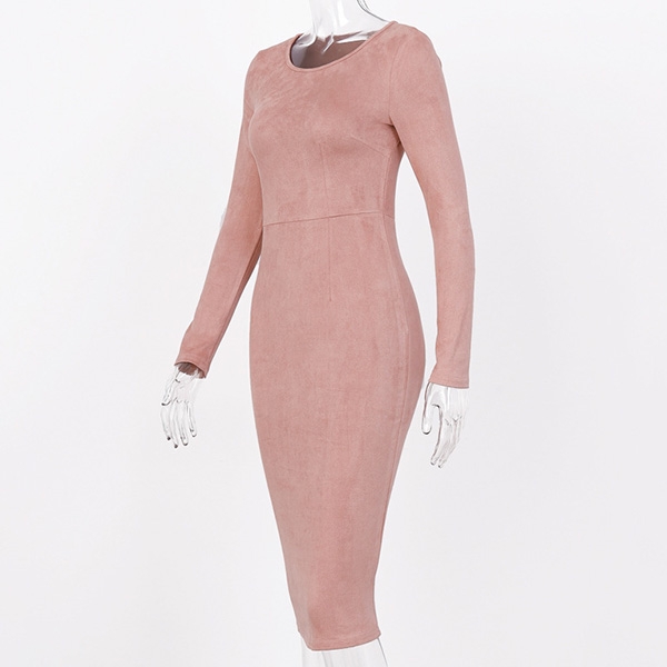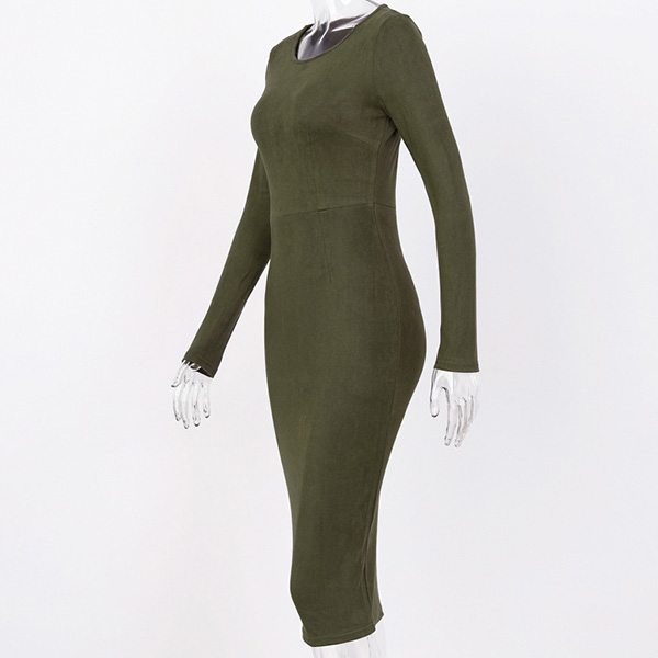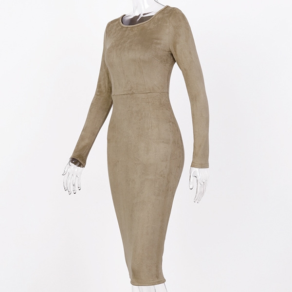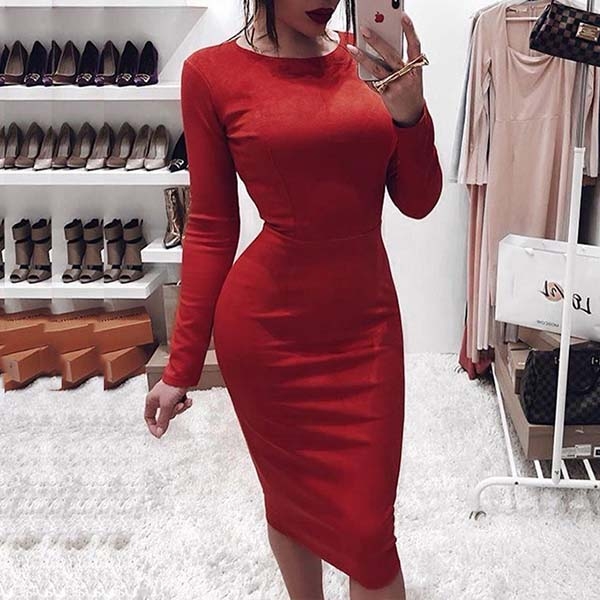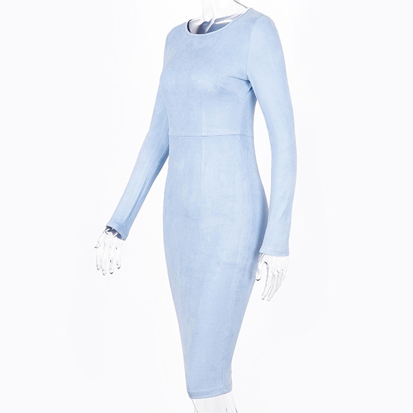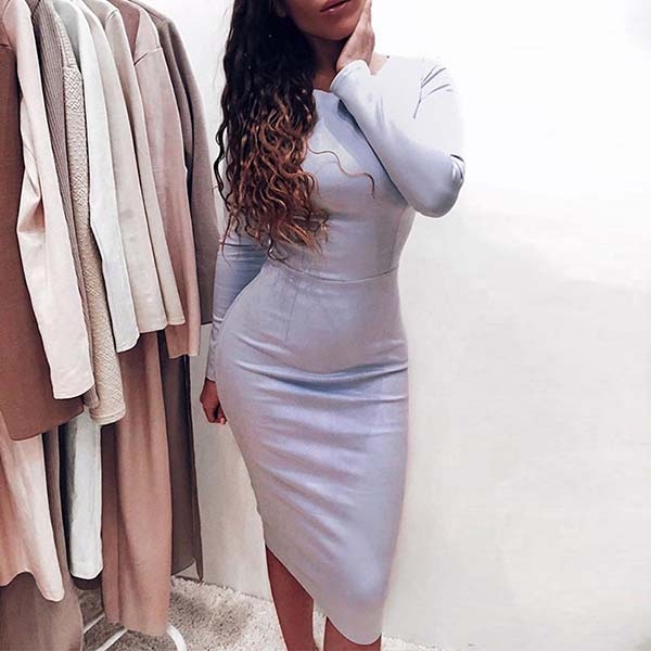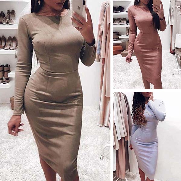 Elegant Solid Color Long Sleeve Round Neck Slim Fit Dress(It falls small)
