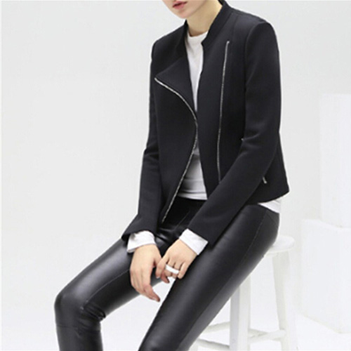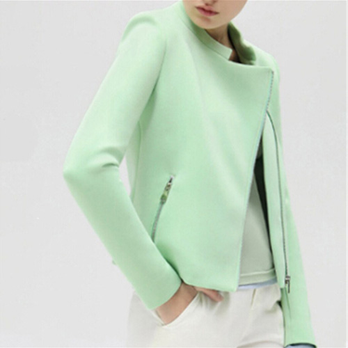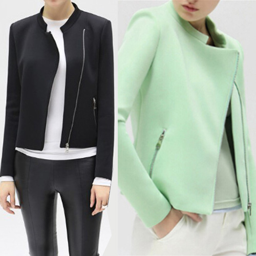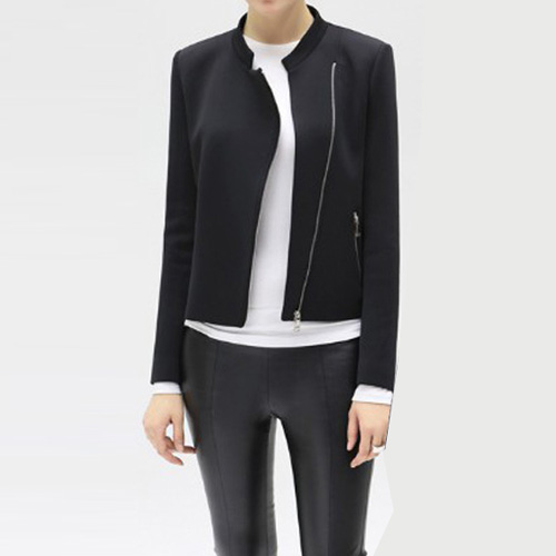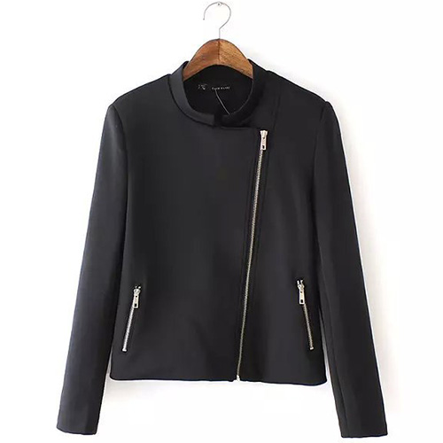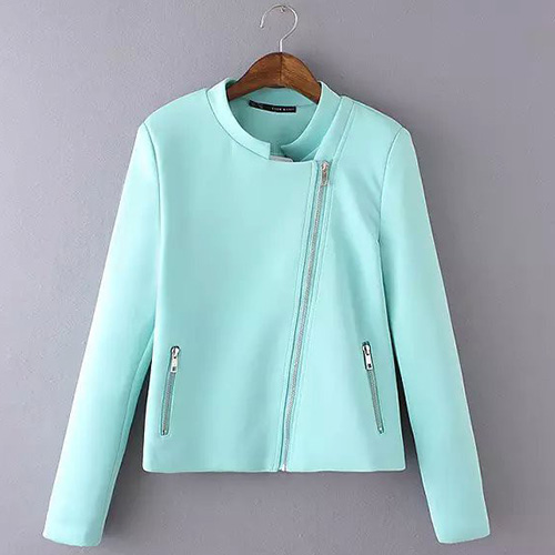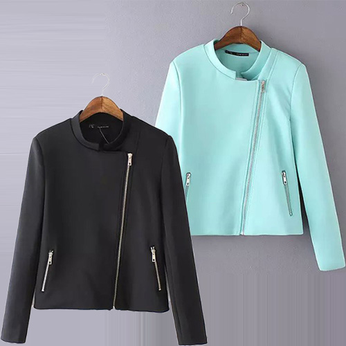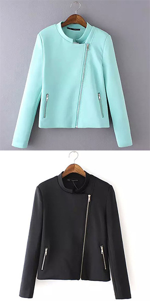 It features solid color style,with long sleeve,zipper pockets and oblique zipper design. All-match