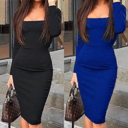 finished with long sleeve,square collar and a fit silhouette,this dress also knows how to demonstrate