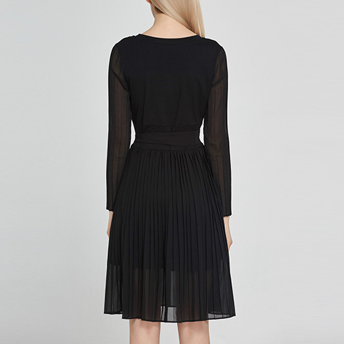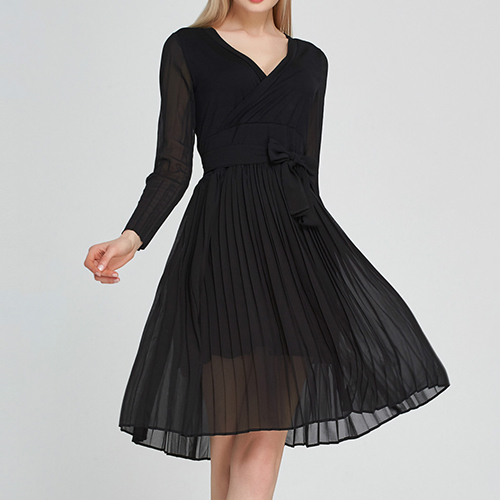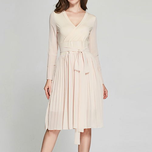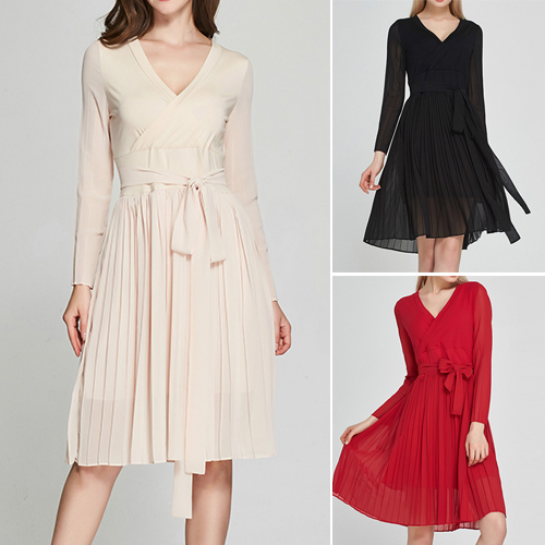 color,with long sleeve,v-neck and pleated hem,this dress will highlight your charming style,