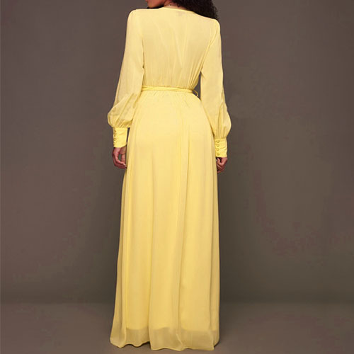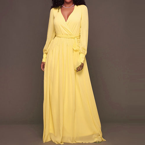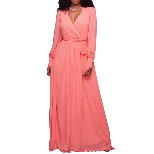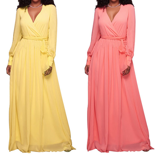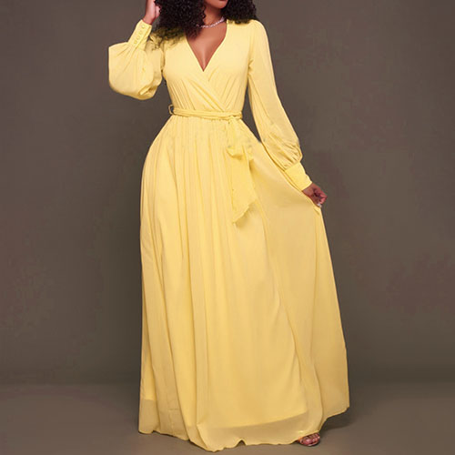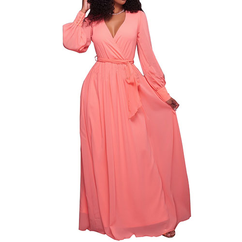 finished with long sleeve,v-neck and a maxi length,this wonderful and delicate dress is a perfect choice for post-work