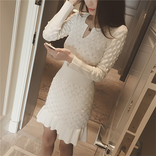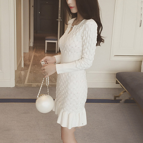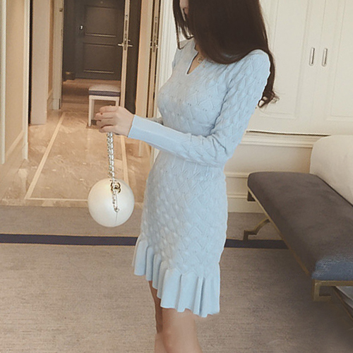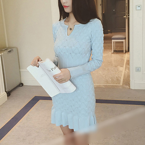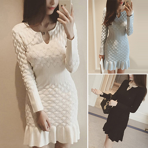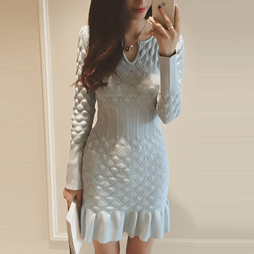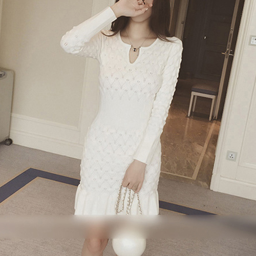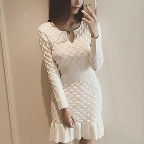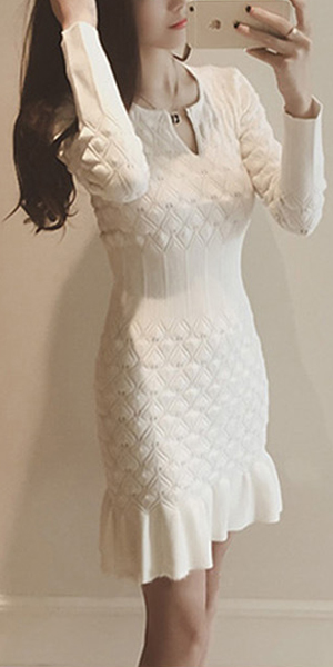 Wow,how could you become so elegant and charming in this knit dress? It features solid color style,