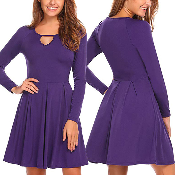 Looking for a dress which can take you to any occasion? Then make your eyes focused on this one!Solid color tone design aims to give you a simple but elegant vibe. Finished with long sleeve,v-neck and high waist design,this delicate dress can portray your elegant and charming image!