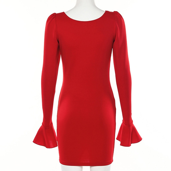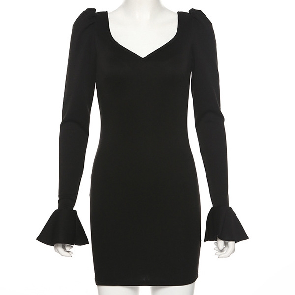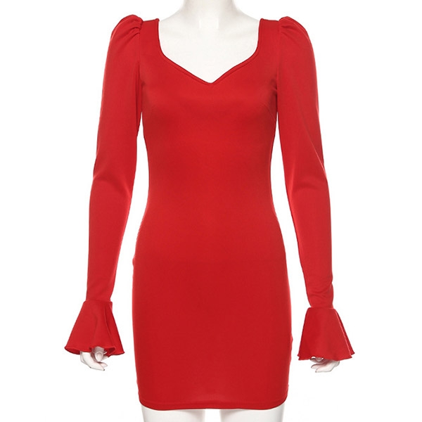 Solid color style,with long sleeve,v-neck and a fit silhouette,this dress definitely can