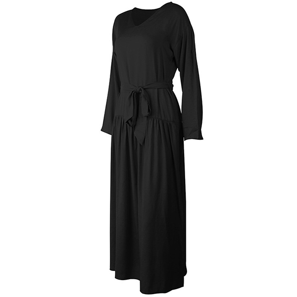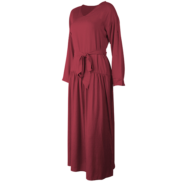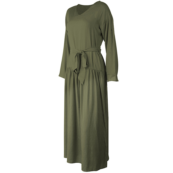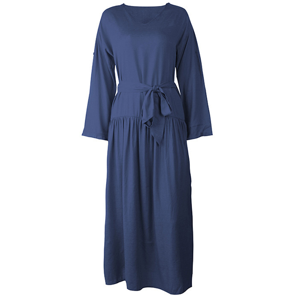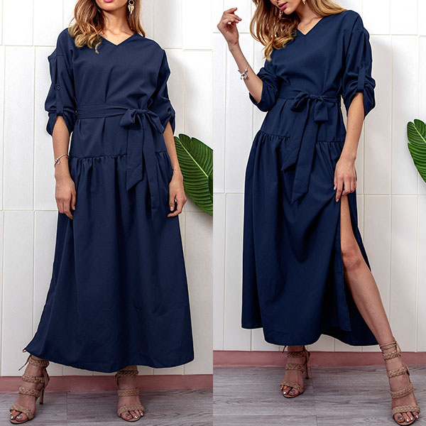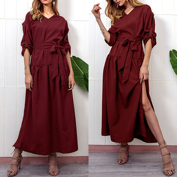 Solid color style,elegant yet stylish. Finished with long sleeve,v-neck and slit hem,this dress also can