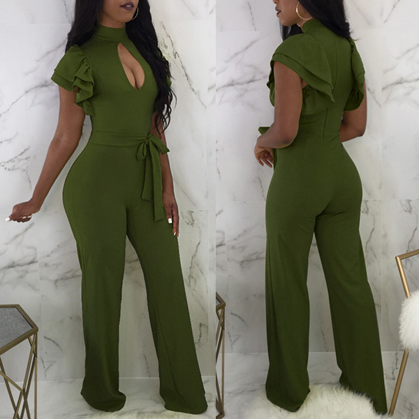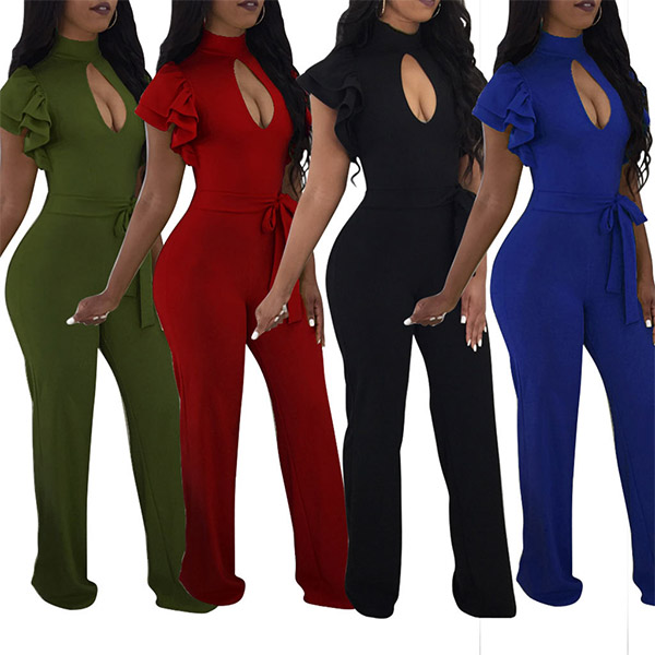 Portray your elegant and charming image through this jumpsuit. It comes with a solid color,the lotus