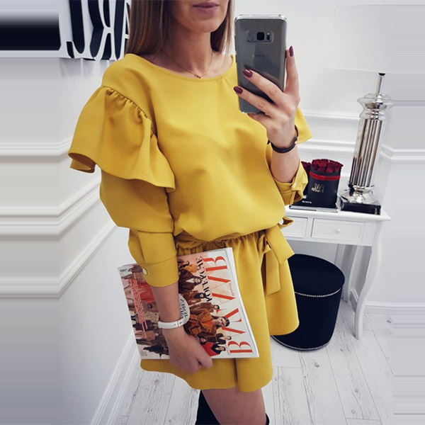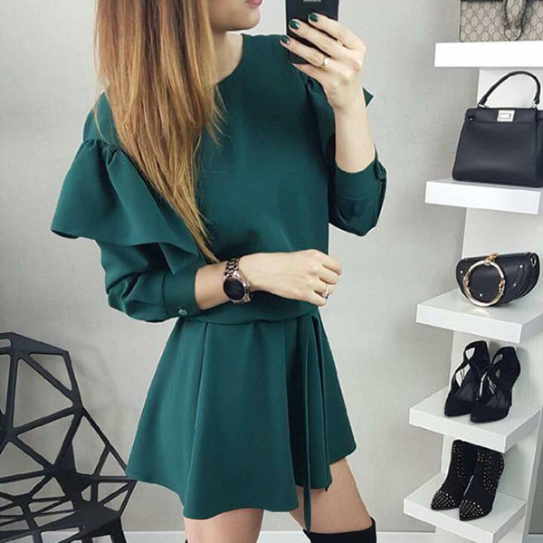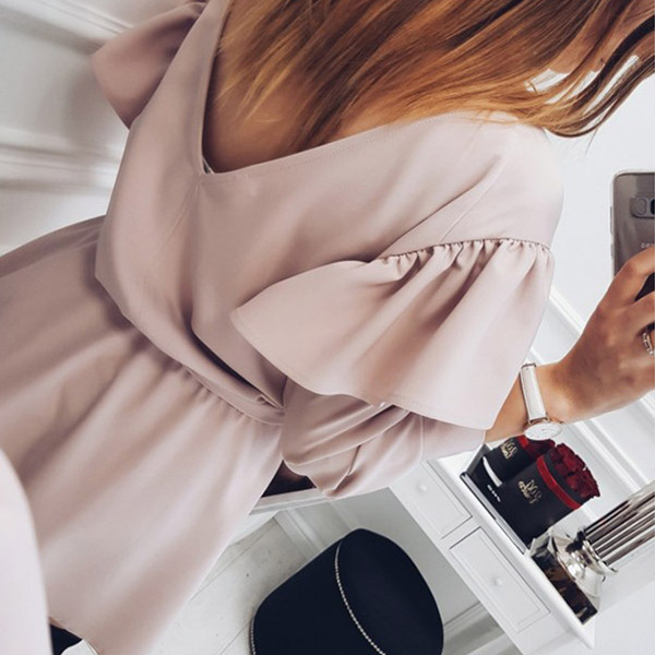 the v-shaped backless and lotus sleeve design will further enhance your charming feminine appeal.