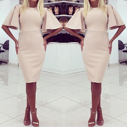 your monotonous closet. Solid color style,outfitted with sweet lotus sleeves,round neck,a fit