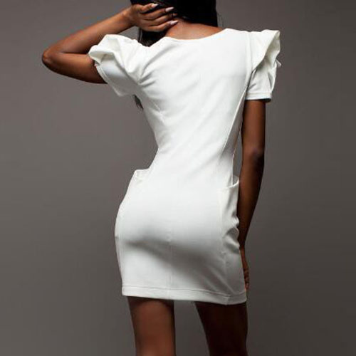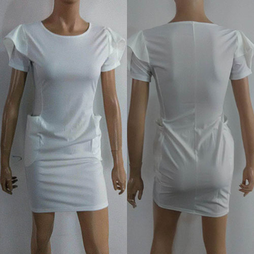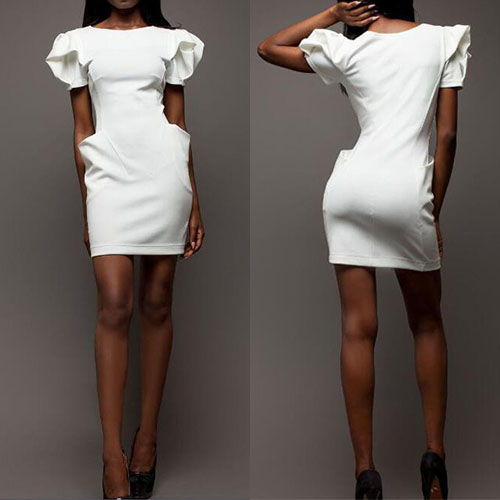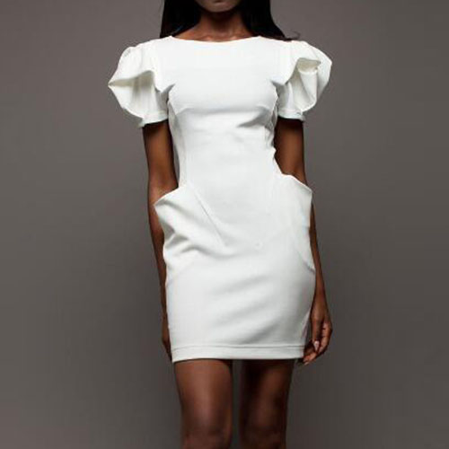 This dress features solid color style,elegant and generous. Outfitted with lotus sleeve,