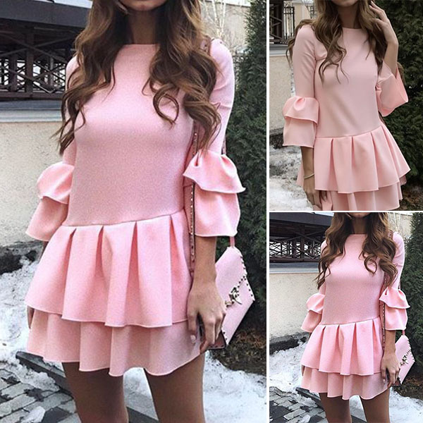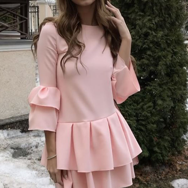with lotus sleeve,round neck and ruffle hem,this dress can give you an easy transition from daytime gatherings to night parties.