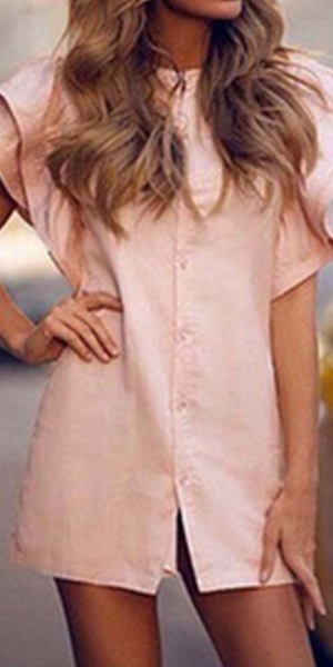 This dress features a sweet and elegant pink color,and its lotus sleeve design makes it look more