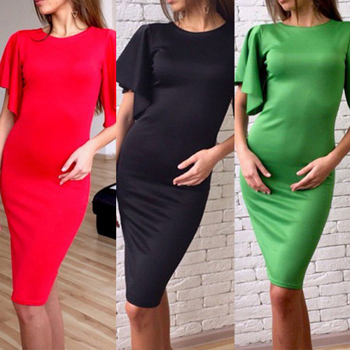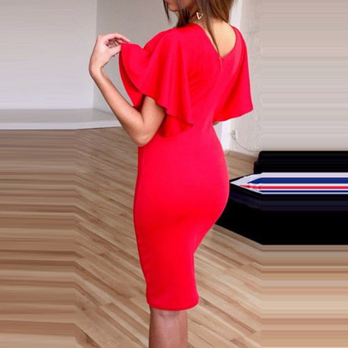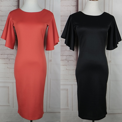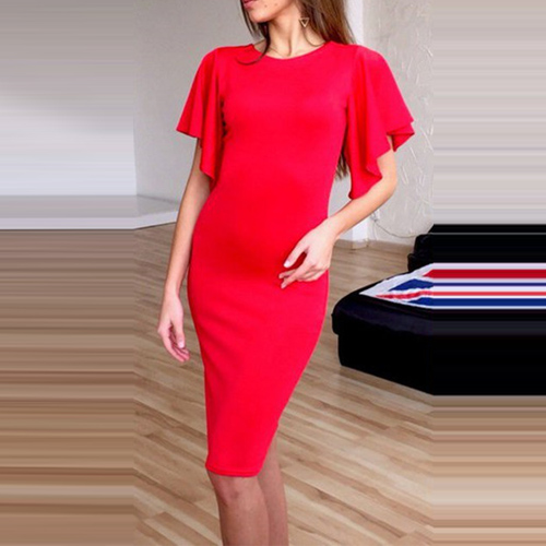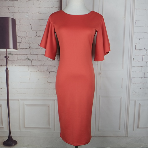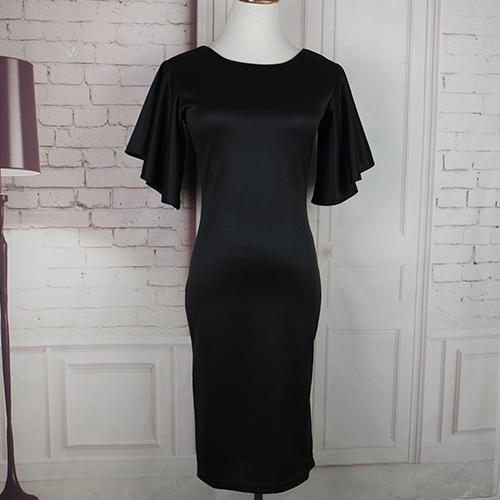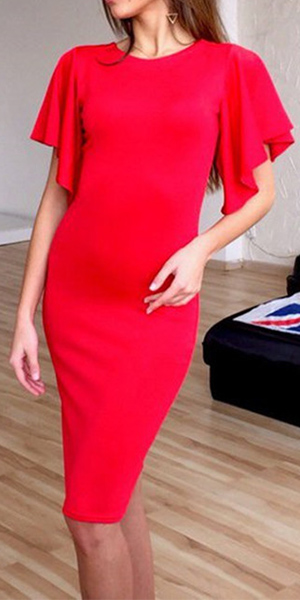 This dress is so elegant and feminine with its sweet lotus sleeves,round neckline and a fit silhouette.