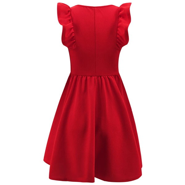 Portray your elegant and charming image through this delicate dress. It boasts a solid color,the lotus sleeve