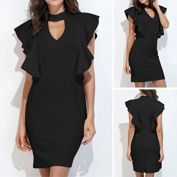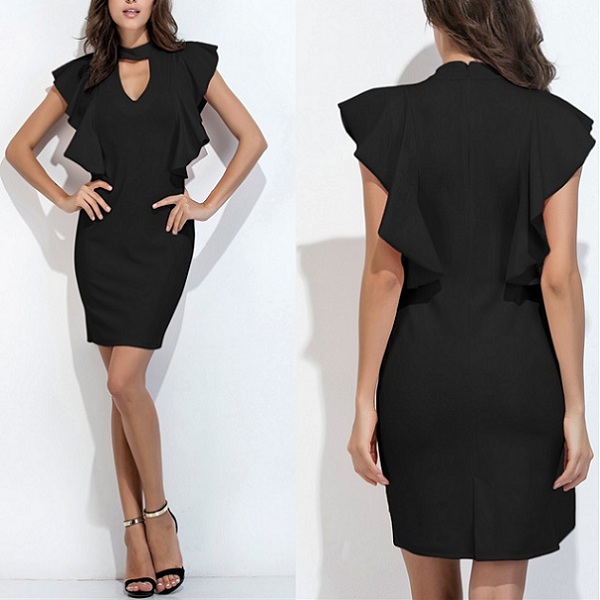 with lotus sleeve,v-neck and a fit silhouette,this dress gives you the chance to show off your slender figure and charming femininity.