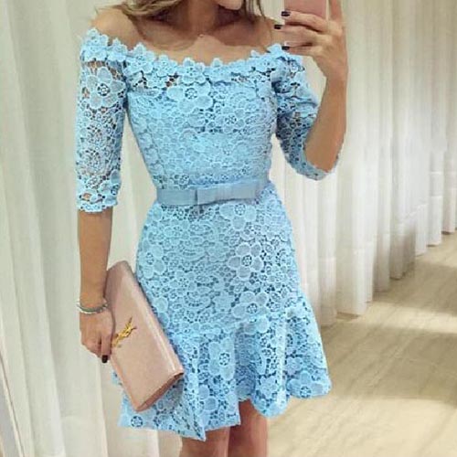 them a lasting impression. Off shoulder design is paired with 3/4 sleeve and gathered waist, which