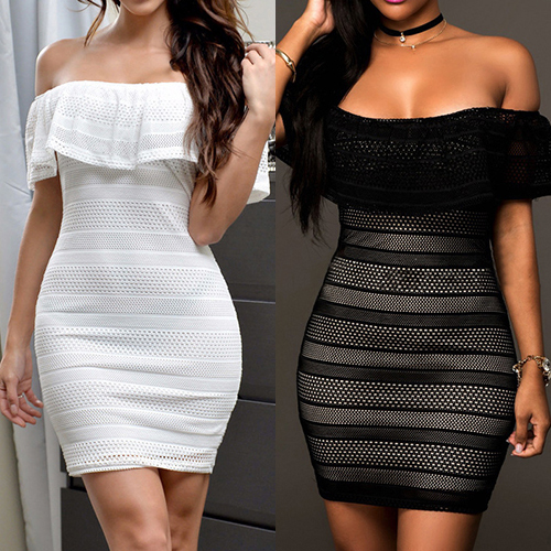 This dress would give you a sexy and charming style thanks to its off shoulder, solid color and