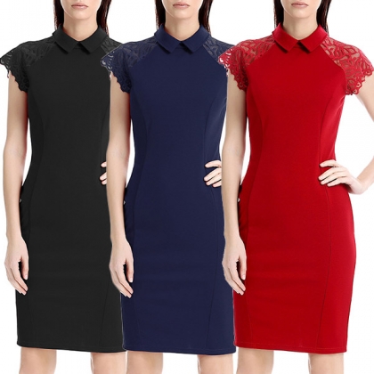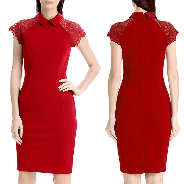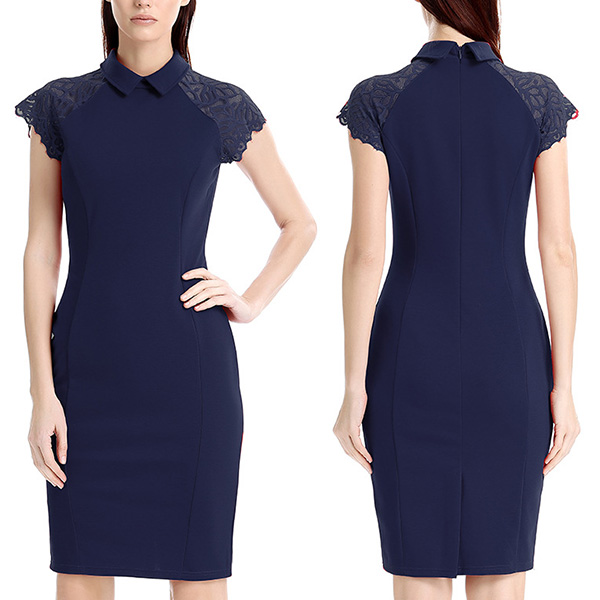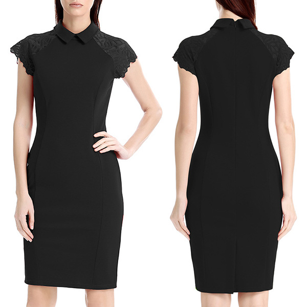 finished with POLO collar,a fit silhouette and lace spliced details,this wonderful piece is a good choice for the