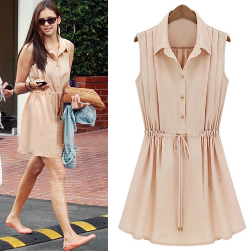 buttons design in front and drawstring design in the waist part. Soft and skin-friendly chiffon