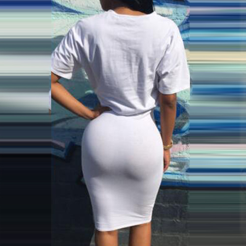 Sexy dress with round neck and short sleeves, concise and elegant. It accentuates your sultry waist and