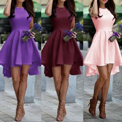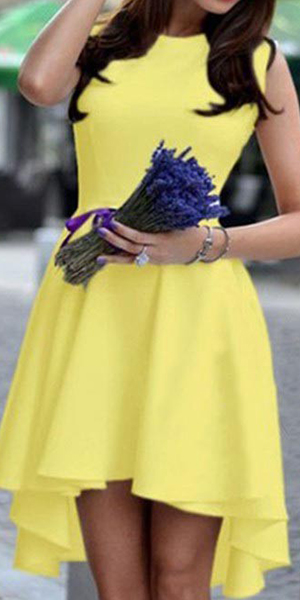 sleeveless and gathered waist design, simple but graceful. Flowing high-low hemline design