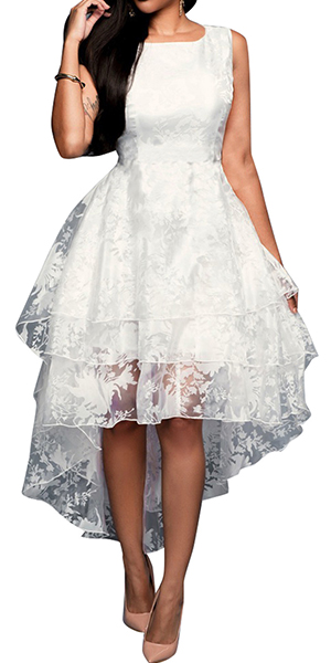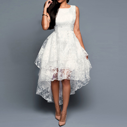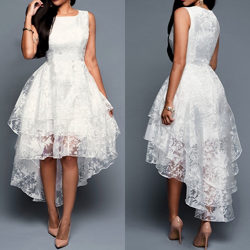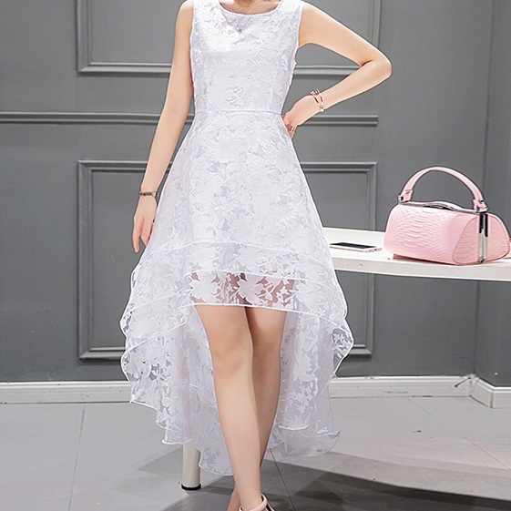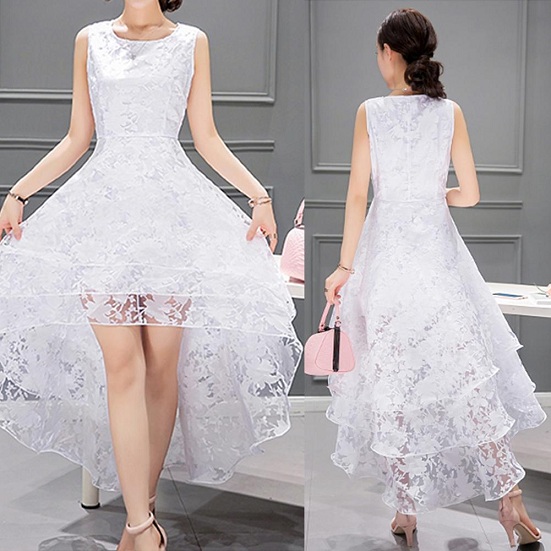 This white gauze dress is your best choice for your night party or wedding spot. Layered high-low hem design perfect highlight your