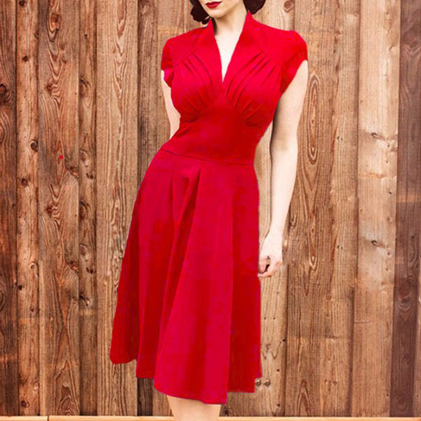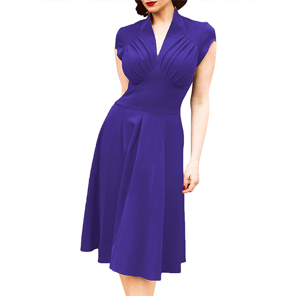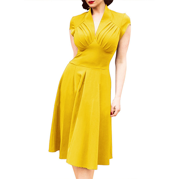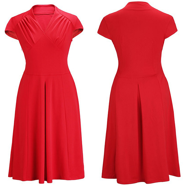 Solid color style,finished with short sleeve,v-neck and high waist design,this elegant and delicate