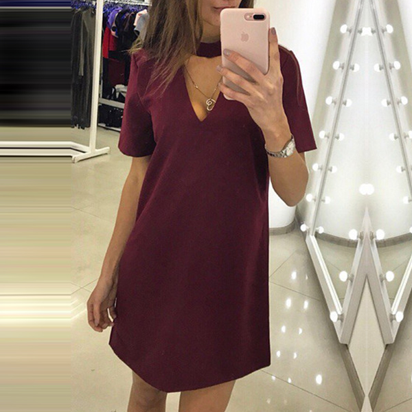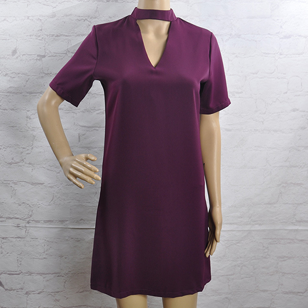 Solid color style,crafted from soft and breathable fabric,accompanied with short sleeve and hollow out v-neck,