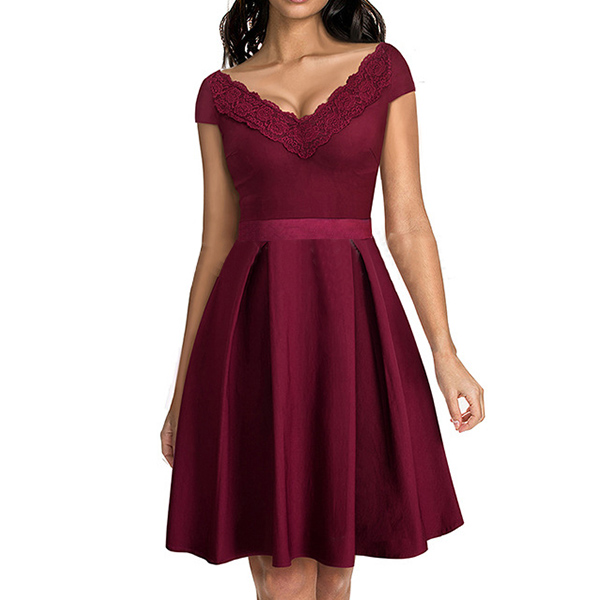 Comes with a solid color,the v-neck and lace spliced design will make your overall dress up look more attractive.